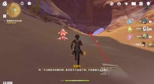 击败途中遇到的愚人众后,继续跟随足迹前进。