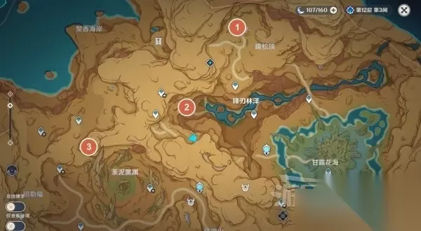 参考上方位置图,序号④的残片位于甘露花海的南边,就在传送锚点附近。