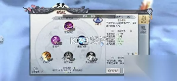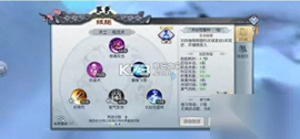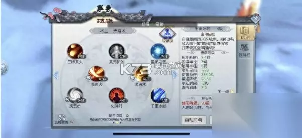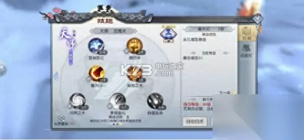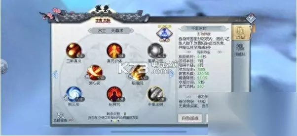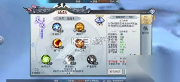 由于术士定位就是法系输出,而在战法牧这个体系当中,法系属于抗性最弱,那么术士(尤其天师)在单挑这一项里就要合理的搭配好自己的技能。 重楼飞雪,雪崩昆仑两个减速技能是能否风筝对手的关键,也是核心技能,所以直接加满。 轻功后会附带两次普攻,而且普攻前两段施法很快,既然要风筝对手,施法时间长的技不能用。这种攻速快的技能优先点满。 可以看到天劫苍雷阵,我点了一级,由于游戏的控制效果只受控制精通及对方控制对抗性影响,并不受技能等级影响,所以选择点一级。当近战通过途径技能近身时,放一段然后打断再瞬移或是轻功走开,运气好还会打出缠绕效果。