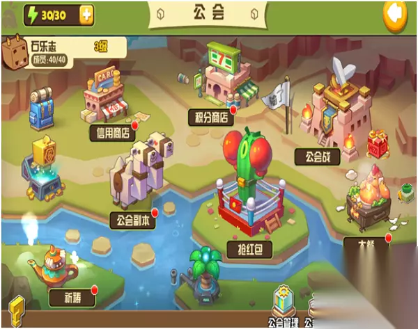 (7)普通商店 普通商店分三种商店,但是只有用勋章和钻石购买。商店里面也是碎片。突破石。还有转生道具可以购买的。 (8)合成熔炉 合成熔炉是用于合成符文和宝石的地方,用五个同等级的符文或者宝石可以合成高一个等级的符文或者宝石 (9)公会大厅 公会大厅里面有两种商店。晚上也可以抢红包,红包里面是钻石。大厅的列表里面也会随机刷新出钻石大家可以领取的。公会副本是公会里面的玩家通过闯关发现的一个小boss。刷了可以通过邮箱获得奖励。但是公会副本是有体力的。一共30点体力。进一次耗费10点。体力消耗完了或者是公会boss通关了就不能进了。大餐里面是可以领取体力的。每天三个时段可以领取体力。公会战就是和其他公会之间的战斗。祈祷是每天祈福,有三种类型。得到的奖励是不一样的。