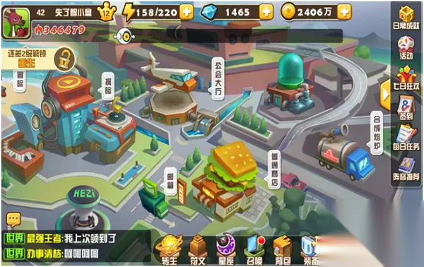 最强王者也是类似之前的竞技场就不多赘述了,守卫家园是建造建筑。等一段时间就建筑完成了就可以去领取奖励了可以加数也可以用钻石解锁更高级的建筑