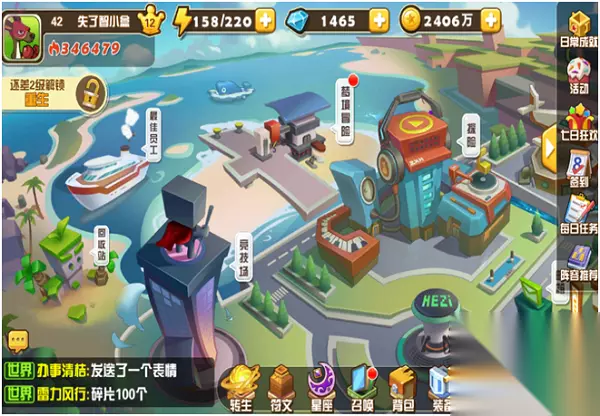 (5)邮箱 邮箱顾名思义就是收邮件的地方 (6)梦境冒险 梦境冒险是类似于寻宝的一种玩法,耗费的是能量,6分钟回复一点能量。自动冒险。可以获得经验和道具之类的奖励