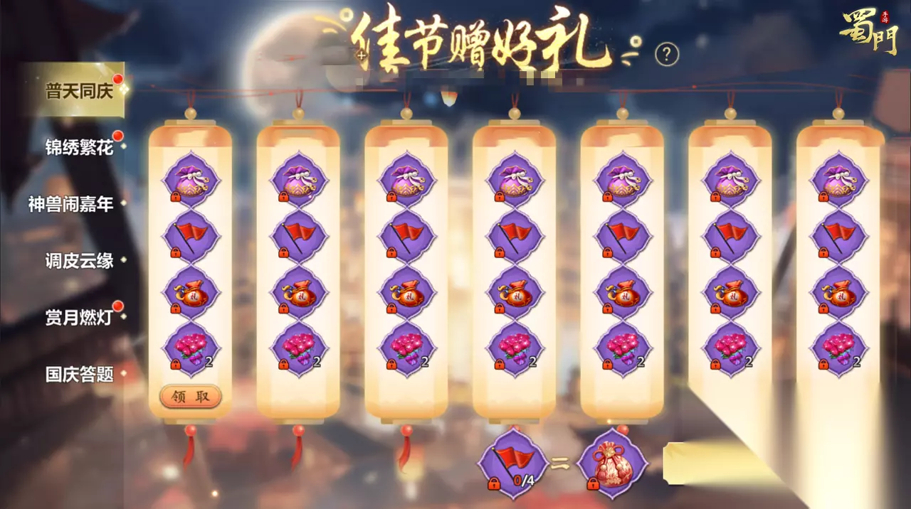 锦绣华诞,普天同庆!在这盛大的节日里,为了迎接超长的假期,我们为您准备了一份绝不容错过的国庆惊喜大礼! 参与日常活动制作花束,可获得限定印花;参与国庆答题,赢取福利点和海量绑银;走进特定场景为华诞燃灯祈福,获得海量经验灵力;文末更有周年庆隐藏成就,错过在等一年! 以下活动仅在服务器等级50级及以上的区服开启。 普天同庆 活动时间:2025年10月1日-2025年10月8日 活动内容:活动期间,每日登录即可领取日常资源自选包*1、小红旗*1、庆典烟花包*1、红玫瑰*2,如期间有漏签,可花费少量钻石补签,使用4个小红旗合成可国庆福袋。