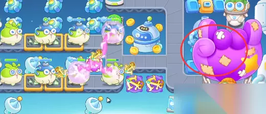 4.这一关又有热气球兔来烦人了,划走它,如图所示。