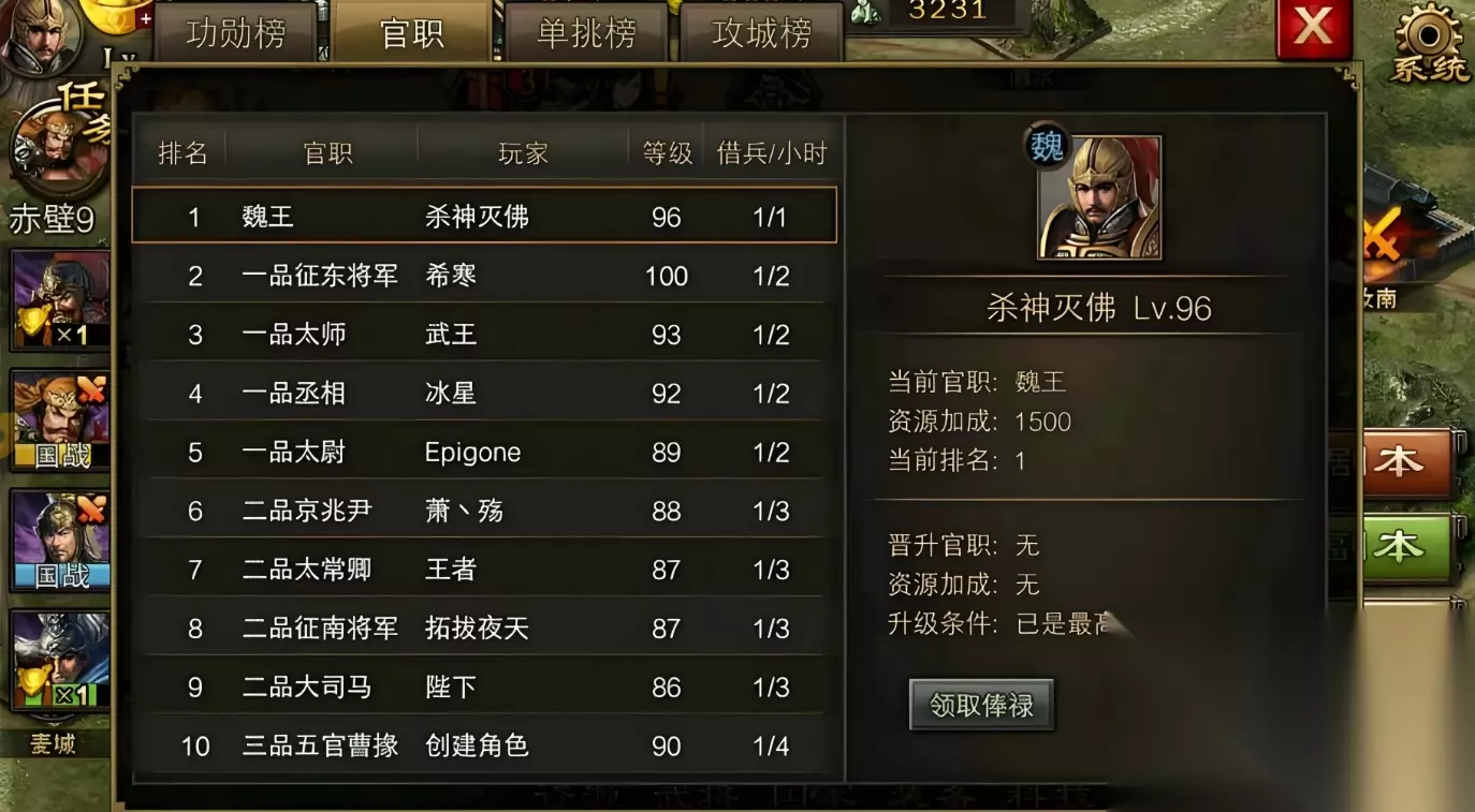 我们还需要学会刷影子,四品以上的官职每天都可以赠送影子奖励,后续达到一定等级后,我们还可以建设术士工坊等,这些都会提升影子产出。影子最好放在敌人都城附近,这样一次性可以刷最多的经验值。合理的使用影子一天下来也会增加不少等级,加上还有一些活动玩法也会增加影子和经验值的获取,比如国战挑战和讨伐董卓等任务。