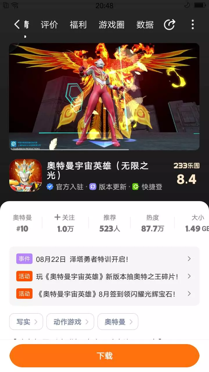 奥特曼进化格斗重生。