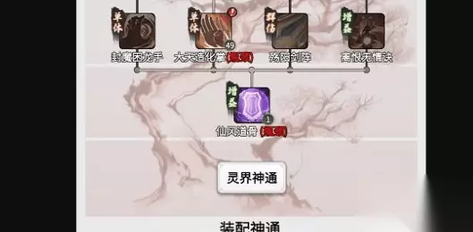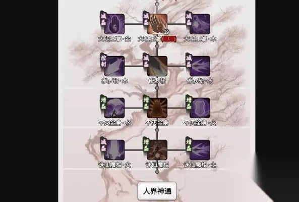 仙风道骨技能领悟之后,系统就会自动开启灵界神通的按钮了,进入灵界神通的页面就会看到我们可以修炼的灵界神通了。灵界神通一共只能学习四种,在这四种神通旁边还各有两个变种神通,一共加起来是12种神通,又要各位好好肝了。同样灵界神通的页面下方还有人界神通的按钮,各位小伙伴不要担心回不去的问题。