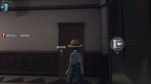推到进门上图的椅子,慈善家会从你的右面走过来查看,这个时候你要沿着餐桌的左面快速跑向花园方向的门