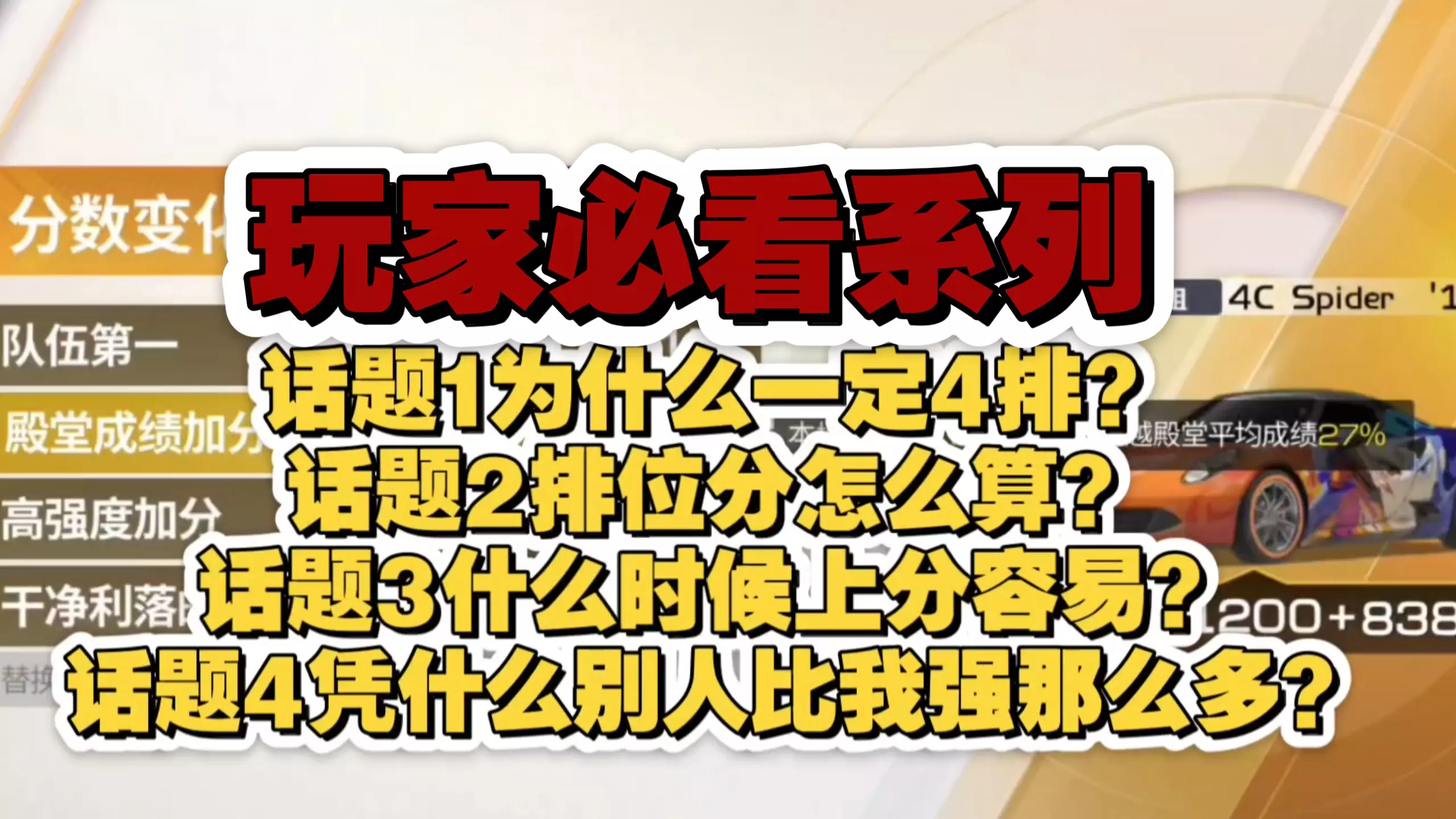 本文分享《巅峰极速》的4种排位玩法,包括躺平、上分、升赛级、刷榜跑法,掌握这些玩法能护肝又高效上分,助力玩家在排位赛中取得好成绩。