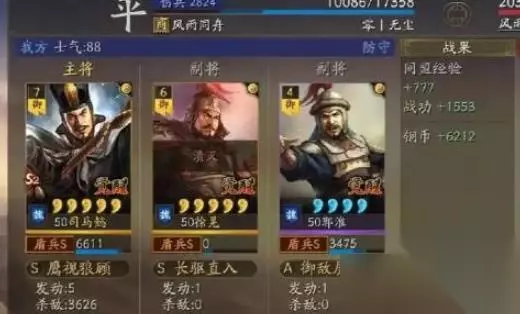 S3兵书方面,刘备点出掩虚,关羽加出一个占卜,张飞加一个鬼谋,PK赛季一系列新战法的加入,让桃园又有了一战之力,最顶配的战法刘备依然不变
