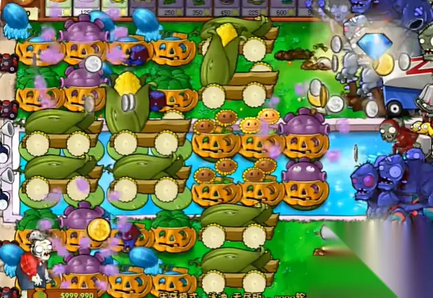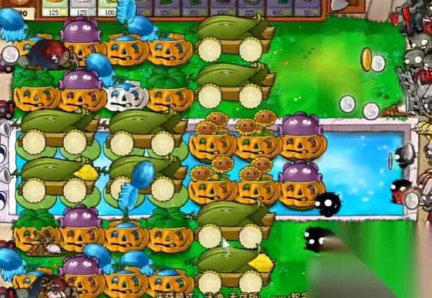 中后期防线:细节定成败 水路僵尸群集?忧郁菇是前排不二之选!三格强力喷杀,瞬间清场效率爆棚!别忘了给陆地关键输出点套上南瓜罩,尤其前排的火力点。这时必须养成随手检查罩子的习惯,眼见它快破?马上点个新的补上!一个罩子的破损,可能就是防线崩溃的开始!