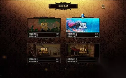 左边是休闲活动环节,一共有四个小游戏分别为休息,度假,趣味,善行
