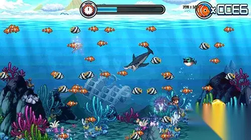度假的话则是捕鱼活动,玩家需要用C键和方向键控制女儿捕鱼,在一定时间内捕鱼越多获得的积分和奖励就越多,里面会随机出现各种道具帮助你捕鱼,捕获黄金鱼会获得大量积分,不过要注意鲨鱼和河豚,他们会减少你的积分和时间。