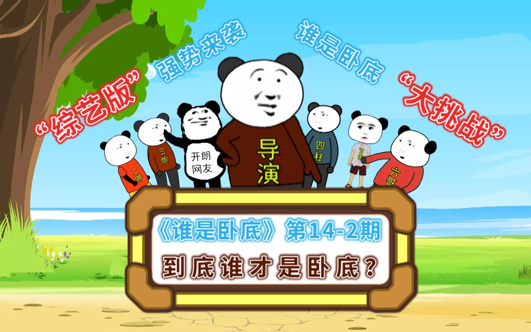 这是《谁是卧底》第13-2期综艺版动画,以熊猫头形象呈现游戏过程,平民词为“人”,卧底词为“狗”,玩家们在发言互动中推进游戏,还出现假线索的反转,悬念感拉满。