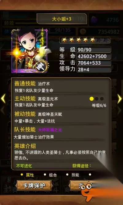 大小姐可以不需要队长技能,反正不死就行了。