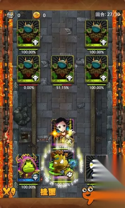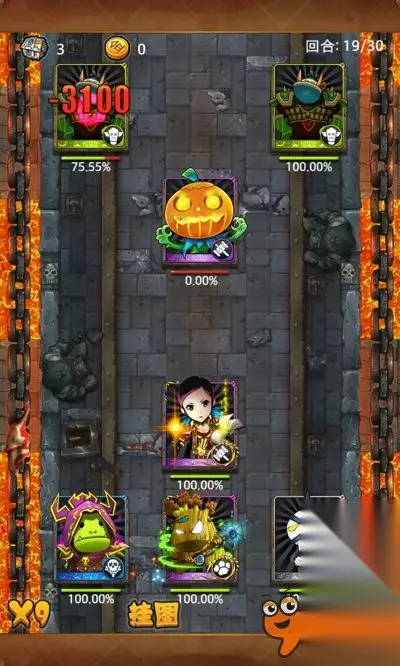 此阵容全程AUTO,不需要手动调节,虽然不敢说100%,但是99.99%是没问题的。 PS:千万不要用火球来代替大妈,火球被动是增加攻击的,容易过第一波小怪,而且火球命中也是个问题,BOSS很有可能打不死两个贼导致失败。 最后祝大家南瓜爆仓~~~