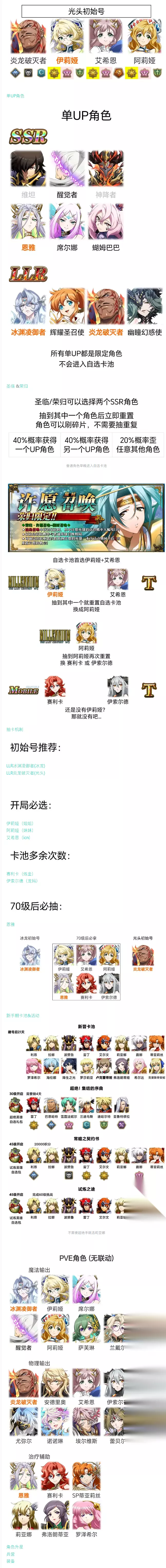 初始号推荐: LLR冰渊凌御者(冰龙) LLR炎龙破灭者(光头) 开局必选: 伊莉娅 (姐姐) 阿莉娅 (妹妹) 艾希恩 (icn)