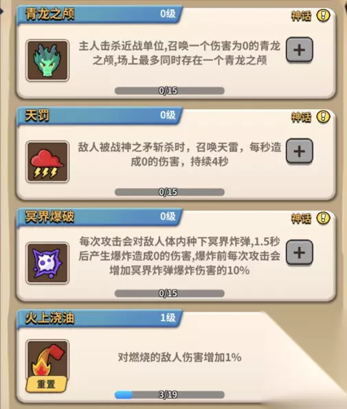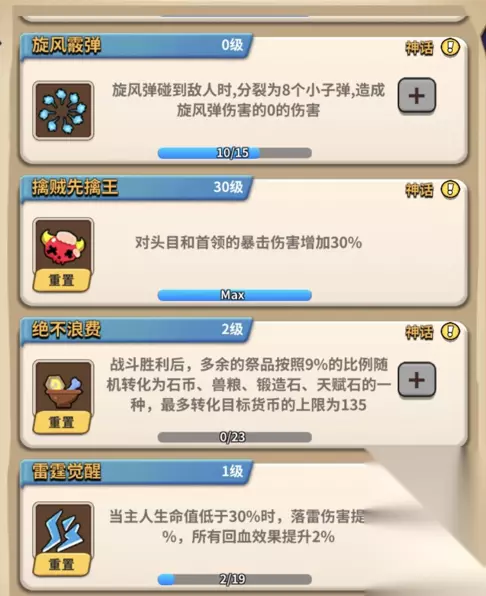 神话魂技一共十三个: 恩赐,旋风霰弹,擒贼先擒王,绝不浪费,雷霆觉醒,毒害,奉还武,赤弧,青龙之颅,天罚, 冥界爆破,火上浇油。推荐升级魂技:幸运蛋,强体,蛮力,神话限免,套装限免,恩赐,擒贼先擒王。 小勇士们快来提升宠物羁绊往更高的赛季目标进发吧~~