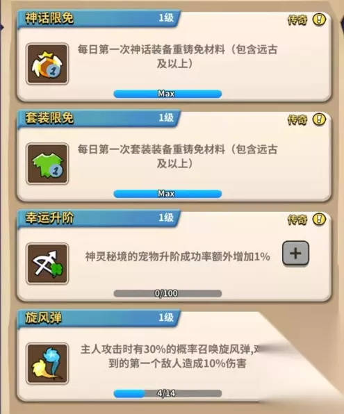 传奇魂技一共八个:强力,蛮力,秘境体验游,游戏省心游,神话限免,套装限免,幸运升阶,旋风弹。