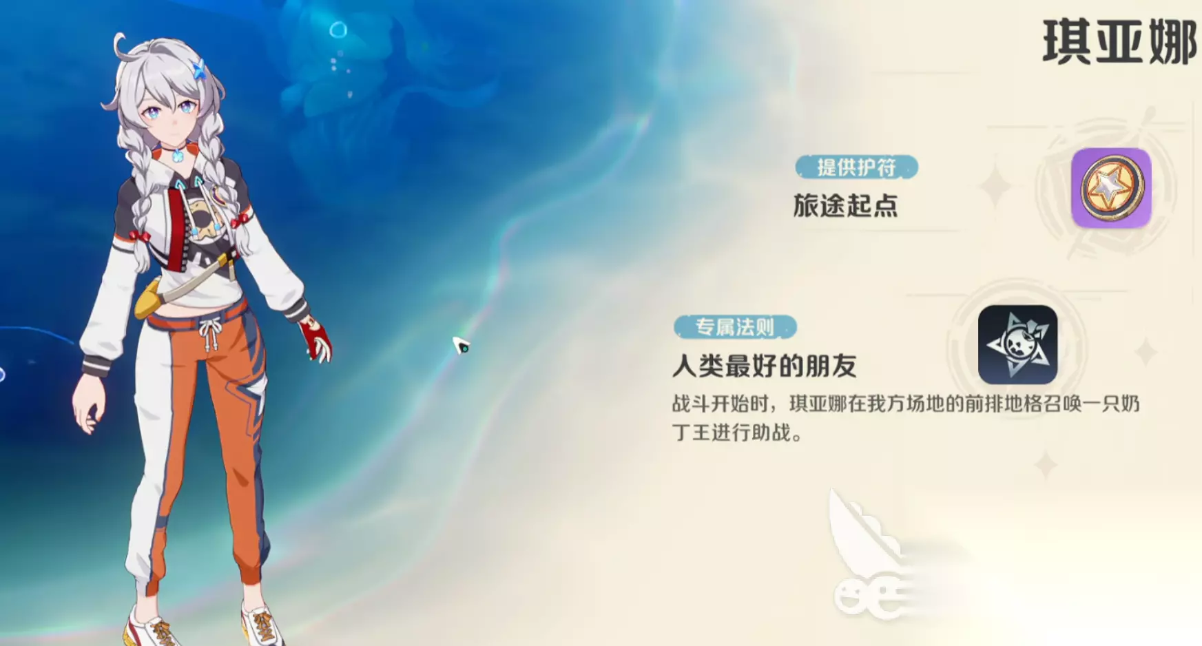 此外,对于喜欢崩坏系列的老玩家来说,还能见到不少经典老角色再度活跃。例如琪亚娜就是崩坏系列人气超高的经典角色,属于四星等级,标志性的双发辫和清爽的语音让很多老玩家都非常怀念。琪亚娜的培养难度也较低,在开局就能召唤出额外的辅助作战精灵,搭配上奶丁汪不仅不会占用初始位置,而且在抗伤和防御上都有不错的效果。同时在中后期培养出更好的友谊后,还会额外解锁其他剧情故事,可探索性很不错。