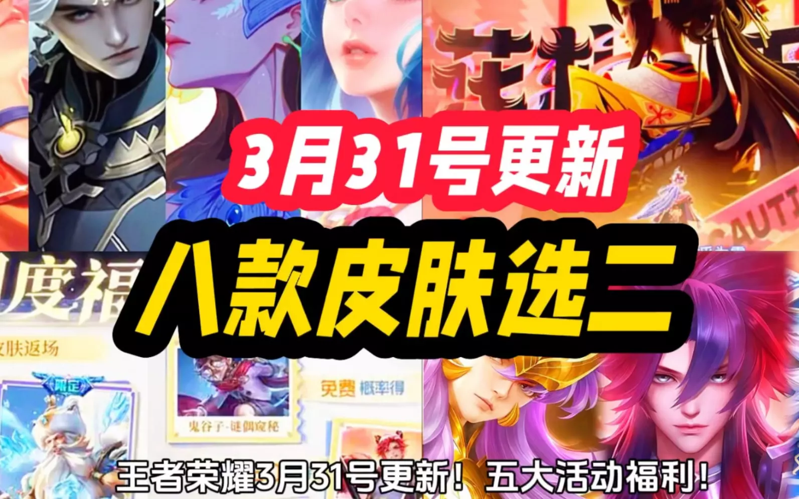 王者荣耀 3月31号更新!五大活动福利!S43新赛季版本大更新!大乔勇者 庄周星传说 后羿 海月战令 六款新皮肤 预热上线!不知火舞花合斗返场!阿古朵星元 多款…