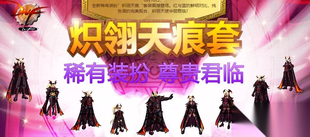 天宇五界:炽火羽痕套 此套之名颇为奇特,被称作地火套。其披风长拖地面,我亦曾拥有此套,红蓝两色皆是。火焰拖曳于地,故名地火套。尤其是格斗家之装,颇为动人,同样在2016年的国庆追忆中一度出现。