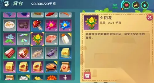 作用:可以制作新的饲料 符文包+鳐鱼+夕阳花=苍穹幻龙饲料 以上就是关于夕阳花位置的具体内容,因为不固定,所以在新地图中多找找就可以了。