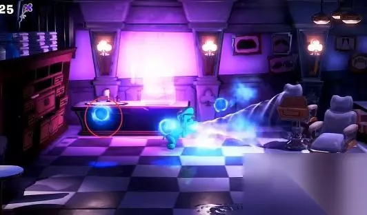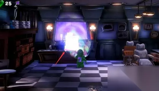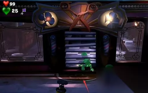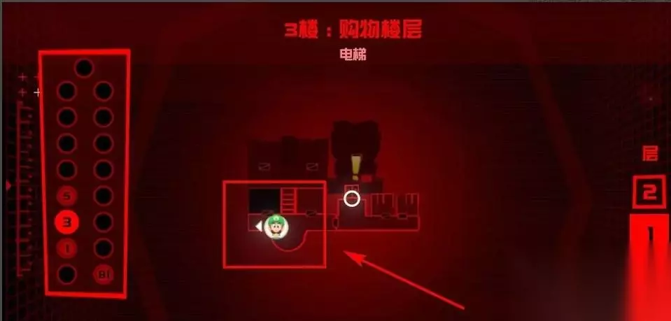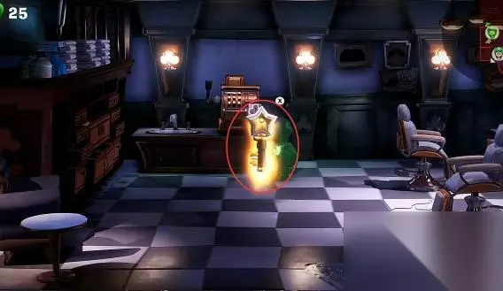 拿到3楼购物层的梅花钥匙后来到楼梯旁的理发店,接着操纵傀易吉进入到理发店里,然后使用暗光灯照出柜台上的收银机,最后走近收银机就可以将梅花钥匙插入进去,收银机被打开后可得到一把新的钥匙。具体步骤如下: 1.拿到梅花钥匙后,来到楼梯旁边的房间。