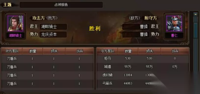 2.热血三国3打县城攻略: 枪兵去打了。3批以后每次 5000G+5000枪+适合自己的冲车(3200冲车在够统率的210左右武力的将带领下直接秒墙)TQ硬破流缺点,消耗超级的大。优点是前期有大量的积累。开始掠夺灭兵,然后10WTQ+2W5的弩,弩在射完箭塔以后,TQ硬冲,此法损失是最大的,也是无奈下的选择,因为改版以后TQ除了掠夺掠夺以外,打墙的威力实在是弱小的了太多太多的了。PS:武力260的将在统率下带5000枪打墙一次62W左右,1WTQ打墙大概200W左右。210的武将3200冲车灭完墙,150左右的武将3500左右的冲车对墙的伤害是1300W。以上是兵有完全加成的情况下的数据。180武的将8W枪大概对墙的威力是80多W,80多武的将十WTQ大概80多W,这些是超过其统率的数据。测试以后可以得出结论统率极其重要,武力越高越BT,每高1点攻击就越BT。