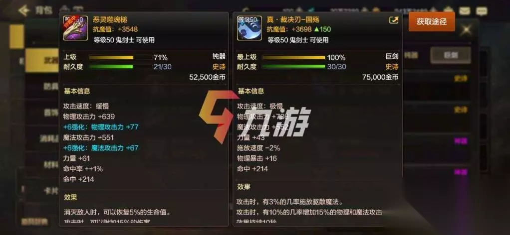这把武器的伤害加成为20%同时附加怒气爆发攻击次数额外+2,还提升了一波2级暴走的技能。总的来看实际加成应该在28%左右,怒气爆发单个技能加成超过30%。比较亮眼的是暴走+2这个属性,也是因为上面提到的换装功能,后面实装的话小伙伴们这把武器将会是狂战士的必备换装之一,大家有幸刷的话可以保留下来。 ——————【真裁决之刃国殇】—————— 【伤害加成】:TOP4 【推荐值】:3星 【获得方式】:史诗制作