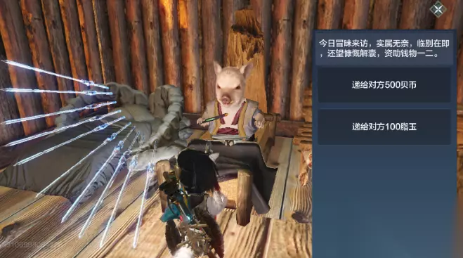 2、家园送客 家园中会不定期的来一些客人,这些客人就是NPC,都是一些缺钱的人,给他们支付一定的游戏币,就能送走,并且获得礼盒。