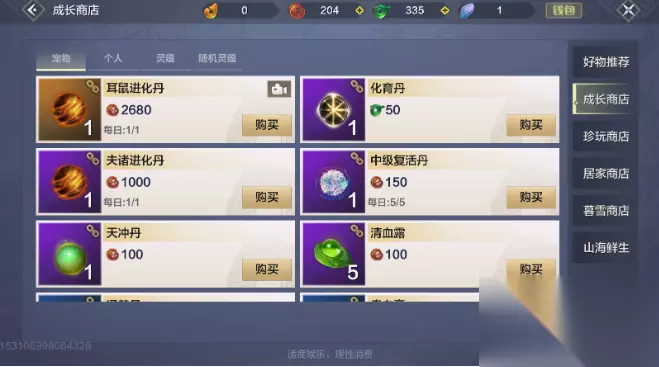 3、商城购买 商城中的成长商店能够直接购买化育丹,价格是50绑定脂玉,绑定脂玉有很多种途径都能获得,日常活跃,悬赏任务等等。