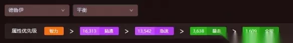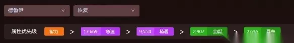 4、奶德 智力>急速>精通>全能>暴击