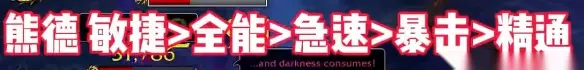3、熊德 敏捷>急速>全能>精通>暴击