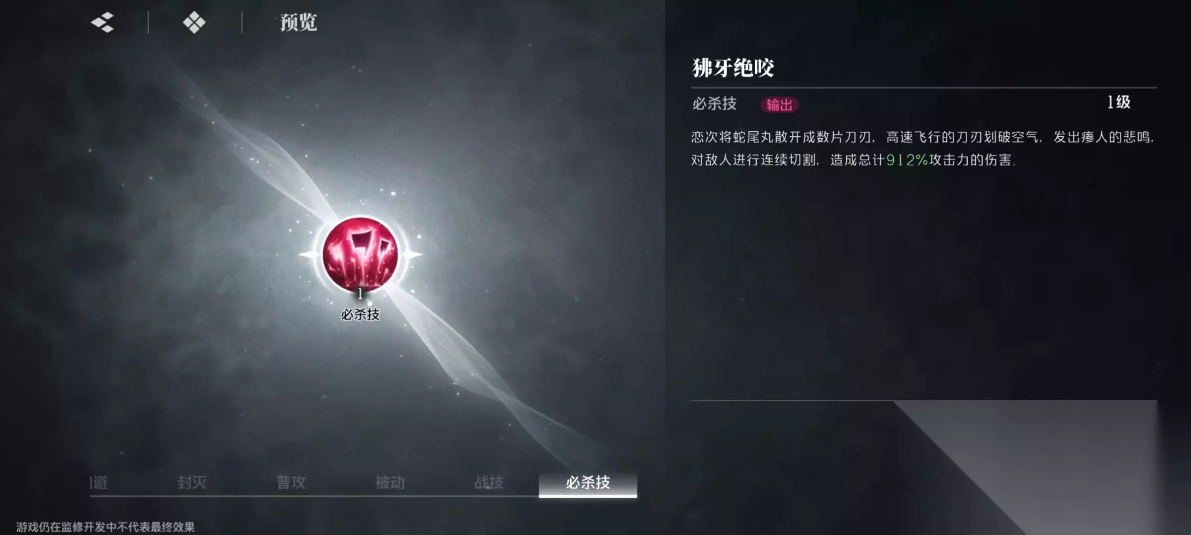 封灭效果是抵挡敌人攻击后,可以对其造成伤害,并朝着自身拖拽,封灭反击命中时也会对敌人施加持续十秒的蛇咬状态。在敌人攻击即将命中时,可以闪避来规避攻击,一旦触发极限闪避,就会使敌人进入到1.5秒的真实停状态,期间阿散井恋次攻速提升,移动速度提升,该效果有15秒的冷却触发时间。如果能将这些技巧全部使用出来,输出还是比较可观的。