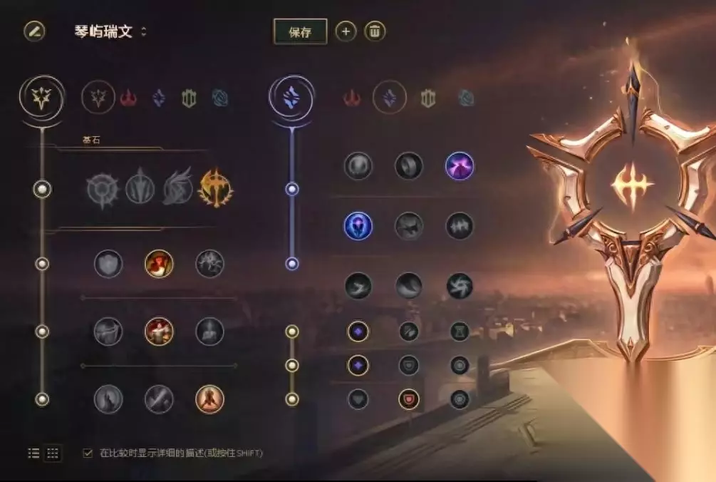 1. 技能细节 通过技能介绍我们能够了解到,锐雯有两段小位移和两段大位移,其中三段位移在Q技能上,所以Q技能是锐雯最核心的技能。 而被动技能是锐雯前中后期最主要的伤害来源。 我们可以看到一级无装备的情况下,被动技能就可以为我提供17点额外伤害。所以这也是为什么锐雯要打光速QA而不是光速QQQ 2. 在以前的版本中锐雯出现过主E,主W,QW对点等多种加点方法,但是目前的版本趋于稳定都是主Q副E的,主Q的原因很简单,减少CD的同时Q也是我们的核心技能,而E技能经过多个版本的削弱,目前E技能几乎格挡不到伤害,因为前期护盾值很少,持续时间又短,所以现在E技能多用于拉扯和衔接技能。 加Q的情况,大多数情况都可以加Q,因为我们的Q技能是拥有小Aoe的,所以不管是抢二还是频繁触发被动都是不错的选择。 加W的情况,加W的情况比较少见,打剑姬可以加w,剑姬Q上来的时候可以WA进行换血,或者直接W走。 加E的情况,主要就是面对手长的AD上单或者船长,来保持血量。 2级 通常情况下都是学习QE两个技能,但是如果我们血量优势,或者面对武器刀妹这种有突进的英雄也是可以学习QW的。尤其是面对武器推荐一级Q二级W。因为武器开着E技能上来我们是不可能去打他的,那么相比于E技能,W不仅能使我们脱离反击风暴的范围,还可以打一个W的伤害甚至可以AW让武器开不出E技能进行换血。(这里都指武器Q上来的情况,而不是自己走进武器E的范围里。) 3级 3级如果起了杀心可以二级Q一级W,但是还是推荐三个技能都学到,因为锐雯是一个非常吃技能组合的英雄。 3. 连招技巧 首先我们先来学习一下光速QA(掌握可跳过) 我们来了解一下光速QA的原理方便我们学习,锐雯的所有技能都有后摇,平A也一样,光速QA的原理就是用点地板去取消Q的后摇,然后A敌方目标再用Q取消平A 的后摇。 完整的光速QA操作如下: 平A起手,Q点地板,A,Q点地板,A,Q点地板。练习方法就是开训练模式,自己对着假人练习,点地板也可以用A键的方式,方法同理。 4. 天赋