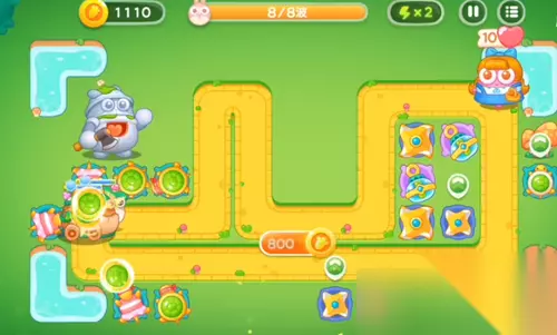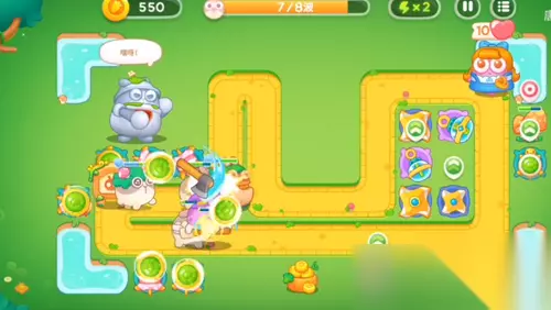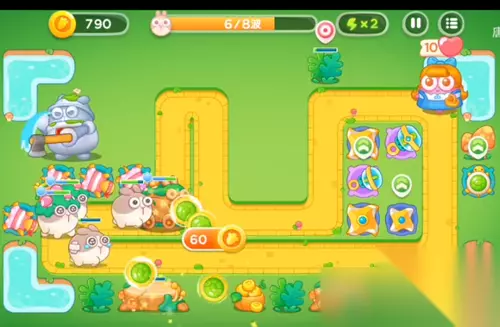 5、风扇塔是要开始攻击人偶了,然后是在左边的位置之中再增加上两个乌龟塔的。