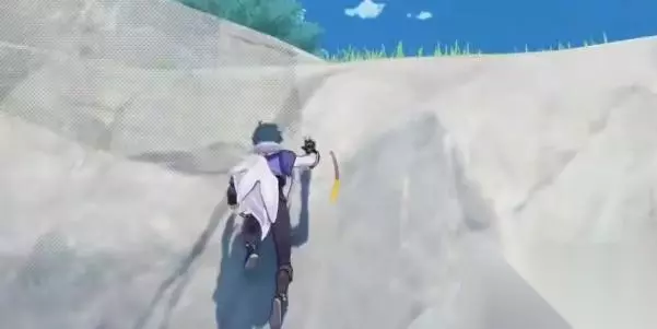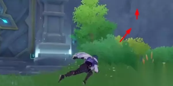 2、遇到岩壁就直接往上爬,在顶部左侧我们可以找到第8处蒙德地灵龛位置。