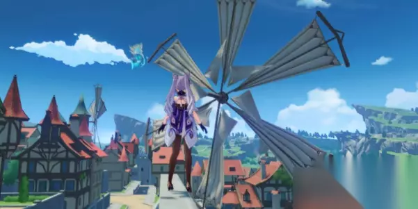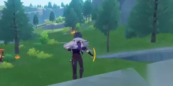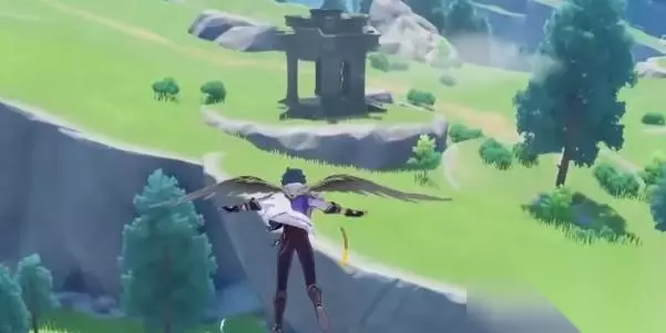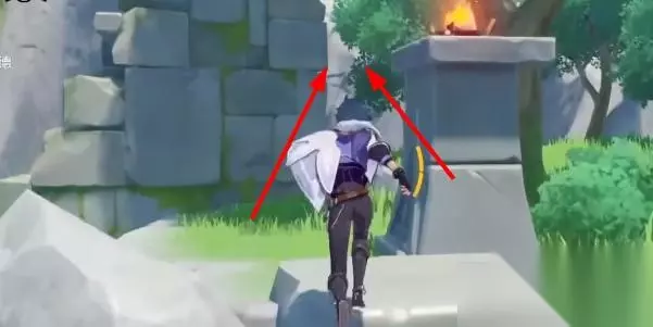 2、一直往前移动到边缘处,然后跳下去就能在右手边看到第九处蒙德地灵龛位置。