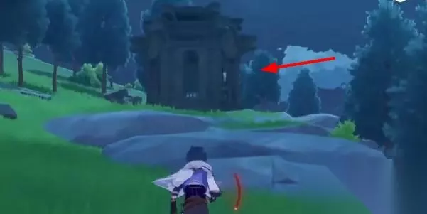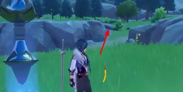 2、爬过前方的石壁,在前方我们就能看到第六处蒙德地灵龛。