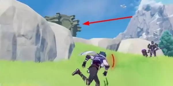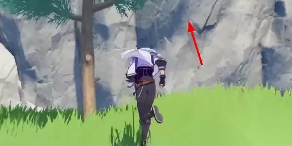 2、在对面岩壁顶部左侧,我们可以看到第七处蒙德地灵龛。