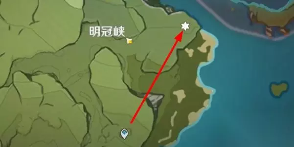 第九处:明冠峡沿海边缘; 1、我们先来到明冠峡下图传送点位置,然后朝着东北方向一直往前走。