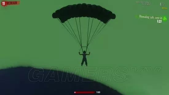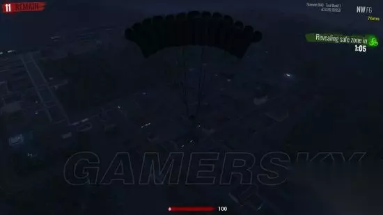 黑夜模式空中,跳伞因为游戏人也太少,地图刷的很小,空中就能看见毒圈。
