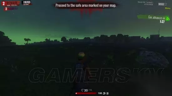 远处警车的样子这里要说一下,开车可以开灯因为开句没有看到车后面又跑到夜晚截图,所以就没有开车开灯的图再顺便说一下当我跑近P城出口的时候大路上的路灯,会亮远处是看不见的。 大家已经看到了已经只剩2个人了,当我跑近警车拿到钥匙的时候剩下的一个老外,已经开车出城了然后就是一波皇城PK我会赢吗?