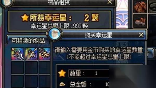 dnf幸运星是游戏中比较重要的一种道具,可以用来租赁武器,还可以用来提升自己强化装备成功的概率,获取方式也比较简单,可以直接使用金币进行购买获得。