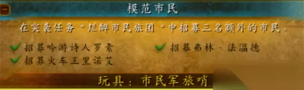 找到三个NPC,完成成就【模范市民】后,即可直接获得玩具:市民军旅哨