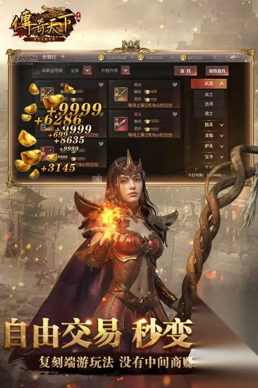 战士还是法师,都可以自由选择没有任何限制,战斗场景看起来非常的真实,能够让玩家更好的代入其中。《传奇天下》完美的还原了端游角色扮演,非常酷的铠甲装备,可以提升玩家的人物战斗力,不断收藏各种武器,增强自己的战斗能力,面对危险的敌人。 高速下载 普通下载 优先233乐园APP下载 5、《热血传奇手游》