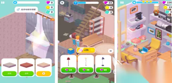 以可爱卡通风格为主,加入上海的模式将在超大的地图中任意探索并建造,结合个人实际,喜好装饰你的梦幻别墅。其中所有场景以及物品都能够自由高度互动,支持无限探索无限创作,布置房屋定制房屋,同时也能够解锁更多家居,打造个性化豪宅。如果不喜欢建造玩法,也可选择装扮模式角色的外观包括发型脸型以及视频全部都由你来决定。 高速下载 普通下载 优先233乐园APP下载 3、《完美装修家》