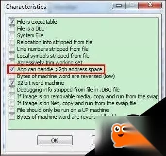 就会出现一个菜单,在App can handle>2gb address space的选项上打钩就行了。