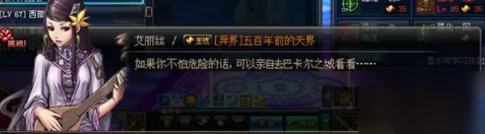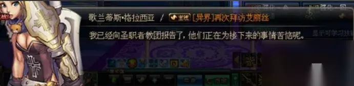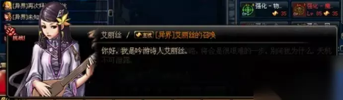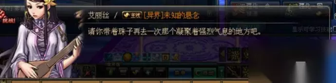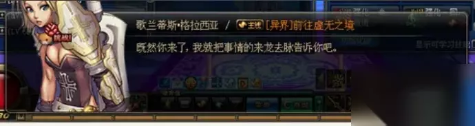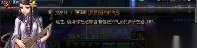 2、当玩家到达70后,就会出现新异界的主线任务,总共有9轮,第1和2个主线玩家只需要拜访NPC艾丽丝和歌兰蒂斯即可!!艾丽丝会要求玩家把凝气珠交给歌兰蒂斯!